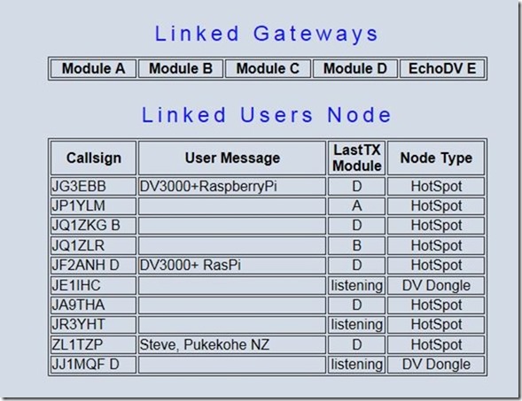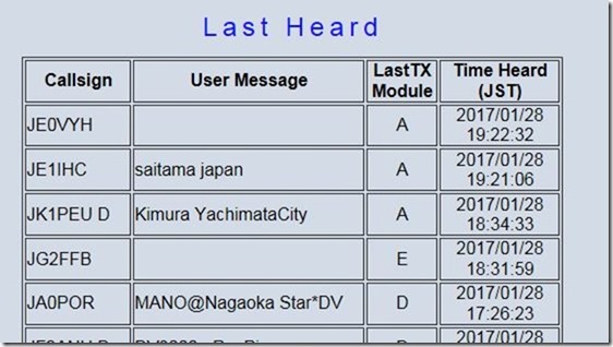 成田D-Sterリピーター情報を見ると接続されている局の情報及びLogを見る事が出来る