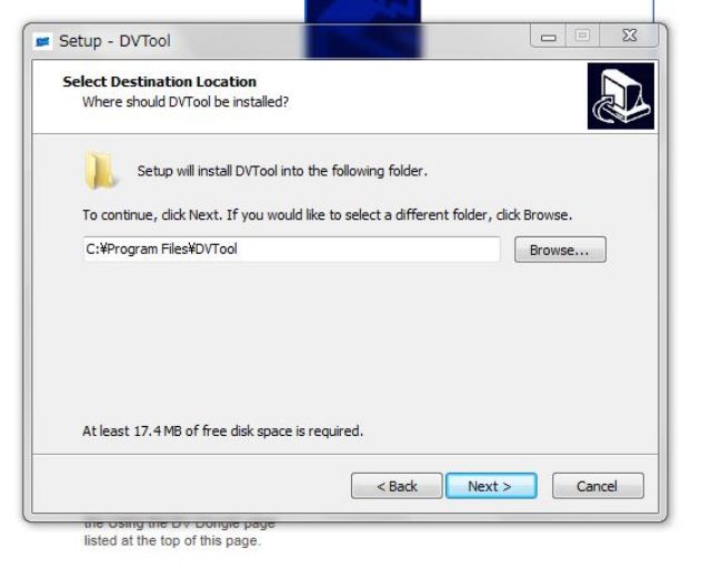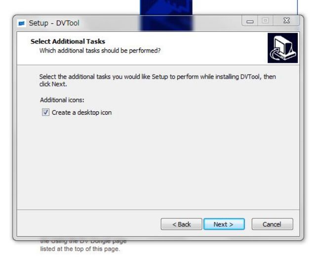 続いてDV dongle制御用ソフト”DVtool”のインストール
