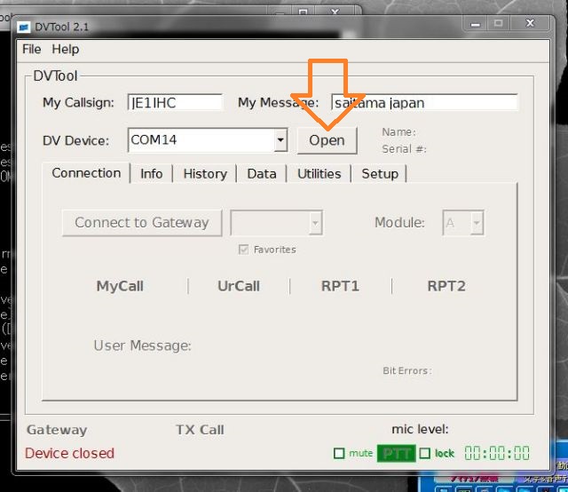 上記ポップアップに続きDVtoolがポップアップされるのでCallsign及びMessageを入力