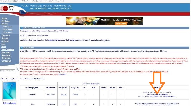 先ずはFT1Dドライバー、矢印にあるリンクからダウンロード