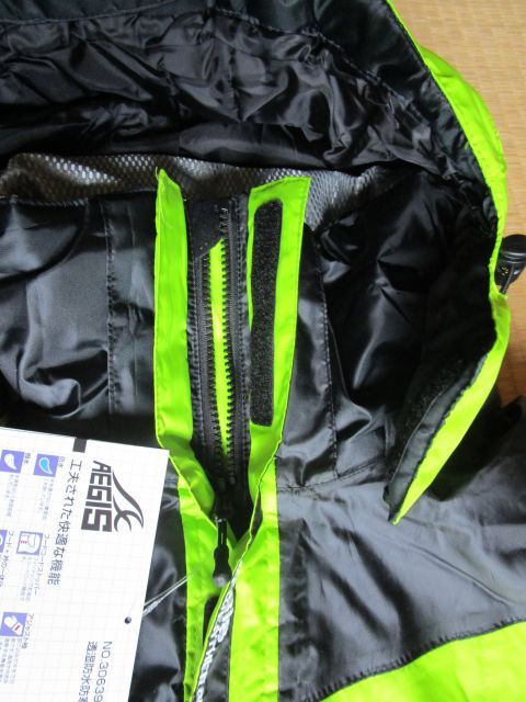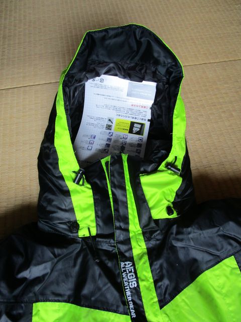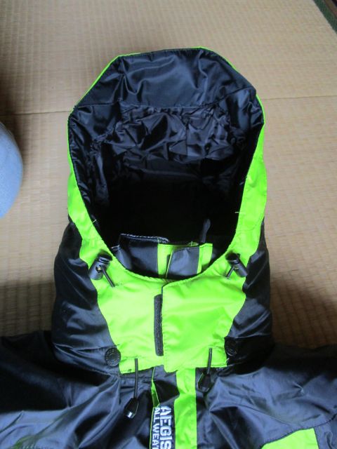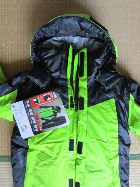 オートバイ用全天候ウエアーと比較すると生地が薄いですが中綿も入っており一般的なレインコートよりは良い