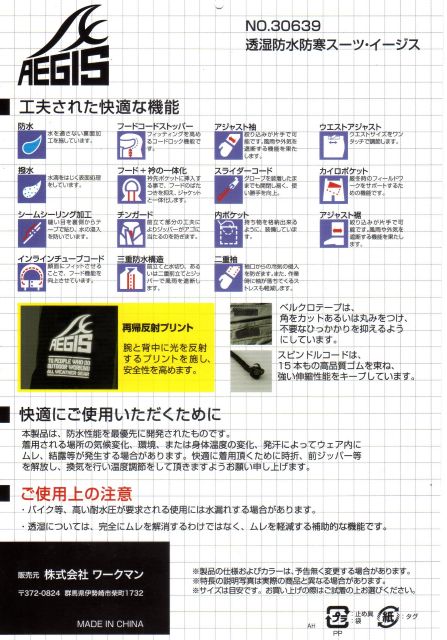 今回購入のAEGISは購入したばかりで実使用していませんが防寒・防水機能は他の製品と比べ引けを取らないと思います