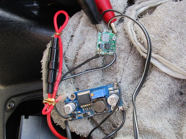 再びオートバイに取り付けてDC-DCコンバータの出力を5.0Vに合わせると正常に動作しました