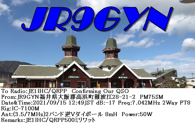 頂戴したQSLには500ミリワットと記載されていますが50ミリワットの間違い、まさか50ミリワットとは思わなかったのでしょう?