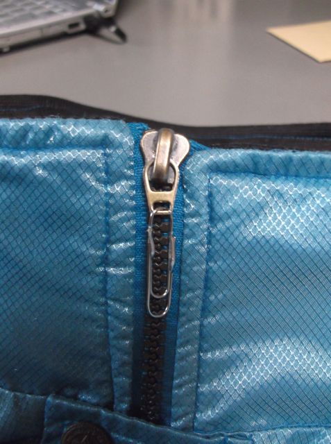 長年使用しているトレーニングエアーのファスナー(スライーダー引き手)が破損したので修理しました